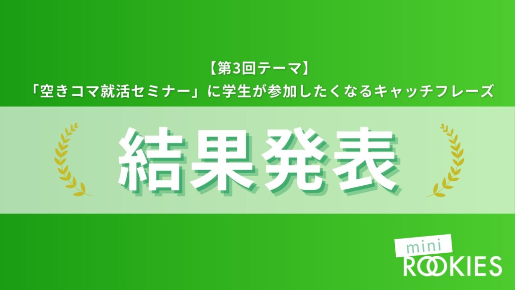 株式会社Strobolights主催のビジネスコンテストシリーズ「CAREER ROOKIES」のスピンオフ企画、ミニRookies。一人で参加できて企画書提出のみで完結の「1番気軽なビジネスコンテスト」第三回の審査結果 … 続きを読む 【結果発表】第3回 mini Rookies